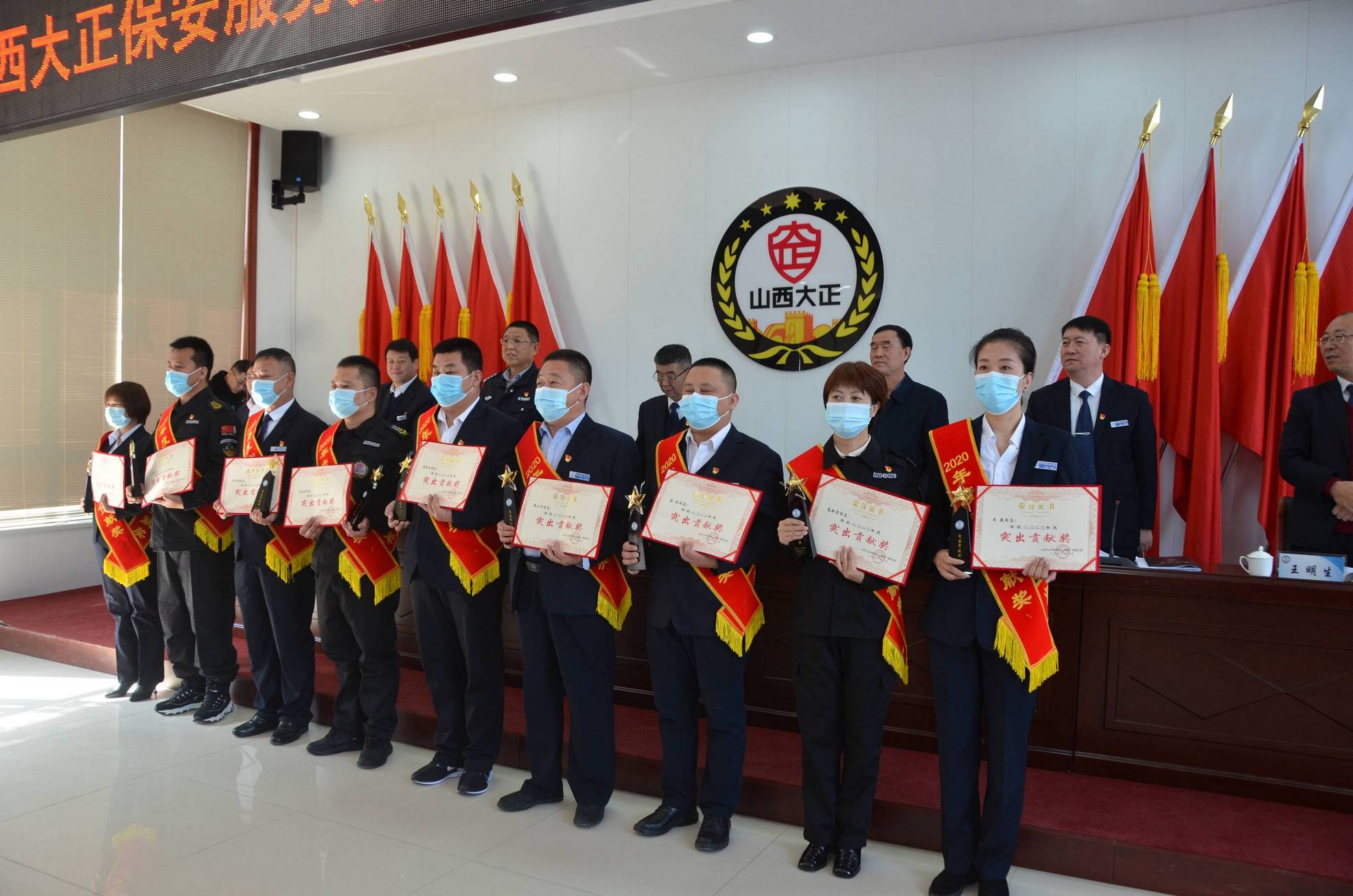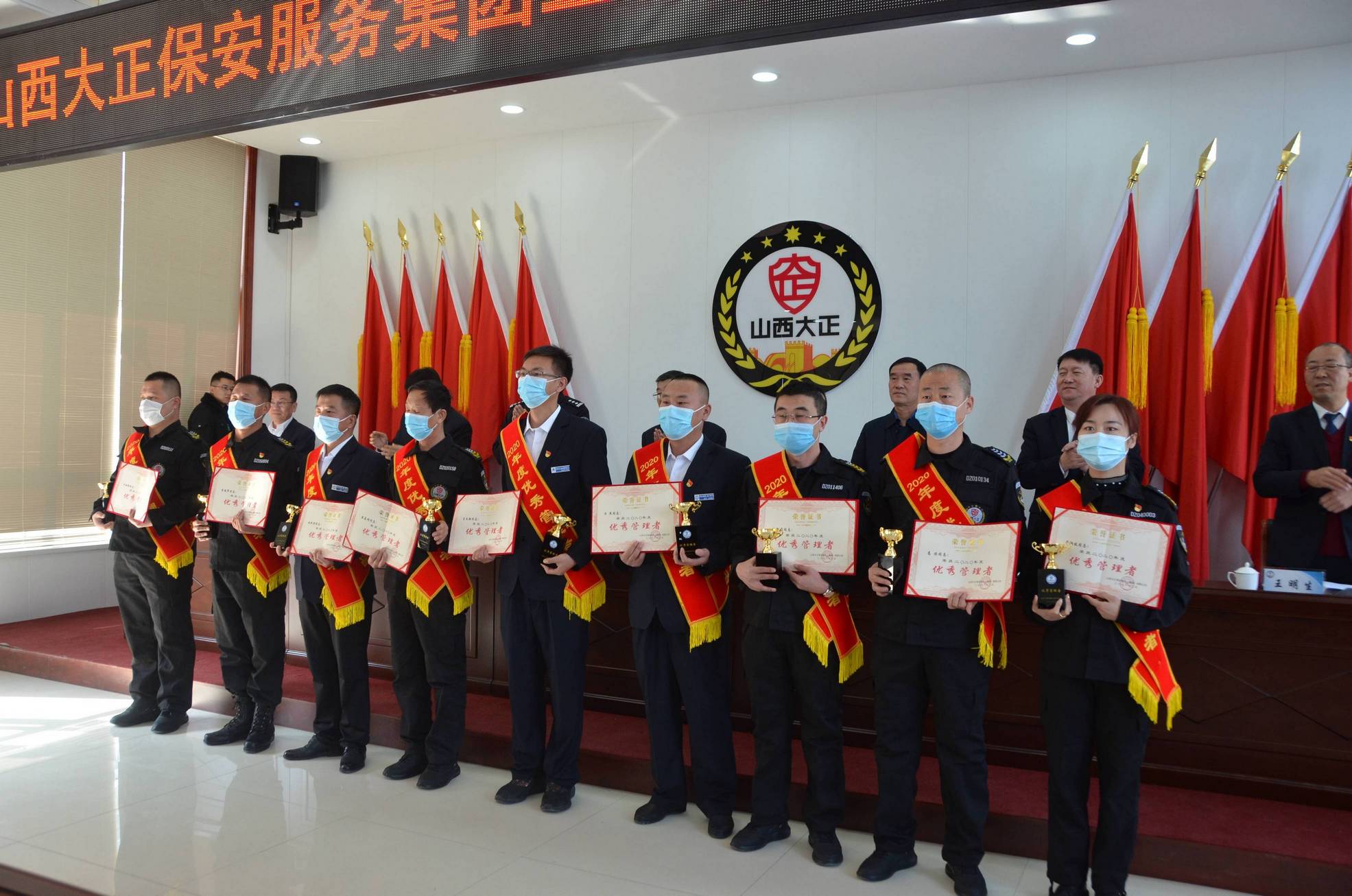 3月1日,山西大正保安服務(wù)集團(tuán)有限公司召開2020年度總結(jié)表彰大會(huì)。市工信局(國(guó)資委)黨委委員、二級(jí)調(diào)研員劉建文,市公安局黨委委員、副局長(zhǎng)馬新文出席會(huì)議。公司中層副職以上干部及受表彰的先進(jìn)集體、先進(jìn)個(gè)人代表共計(jì)120余人參加會(huì)議。