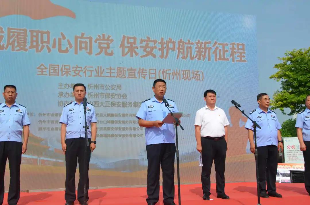 7月24日是我國保安日,上午9時,我公司員工150人在忻州市體育廣場與其他保安公司員工同步開展以“忠誠履職心向黨 保安護(hù)航新征程”為主題的保安行業(yè)主題宣傳日活動,對于展示忻州保安隊伍忠誠履職的良好形象,進(jìn)一步教育引導(dǎo)廣大保安員積極投身常態(tài)化疫情防控和維護(hù)社會治安各項社會作,具有極為重要的意義。