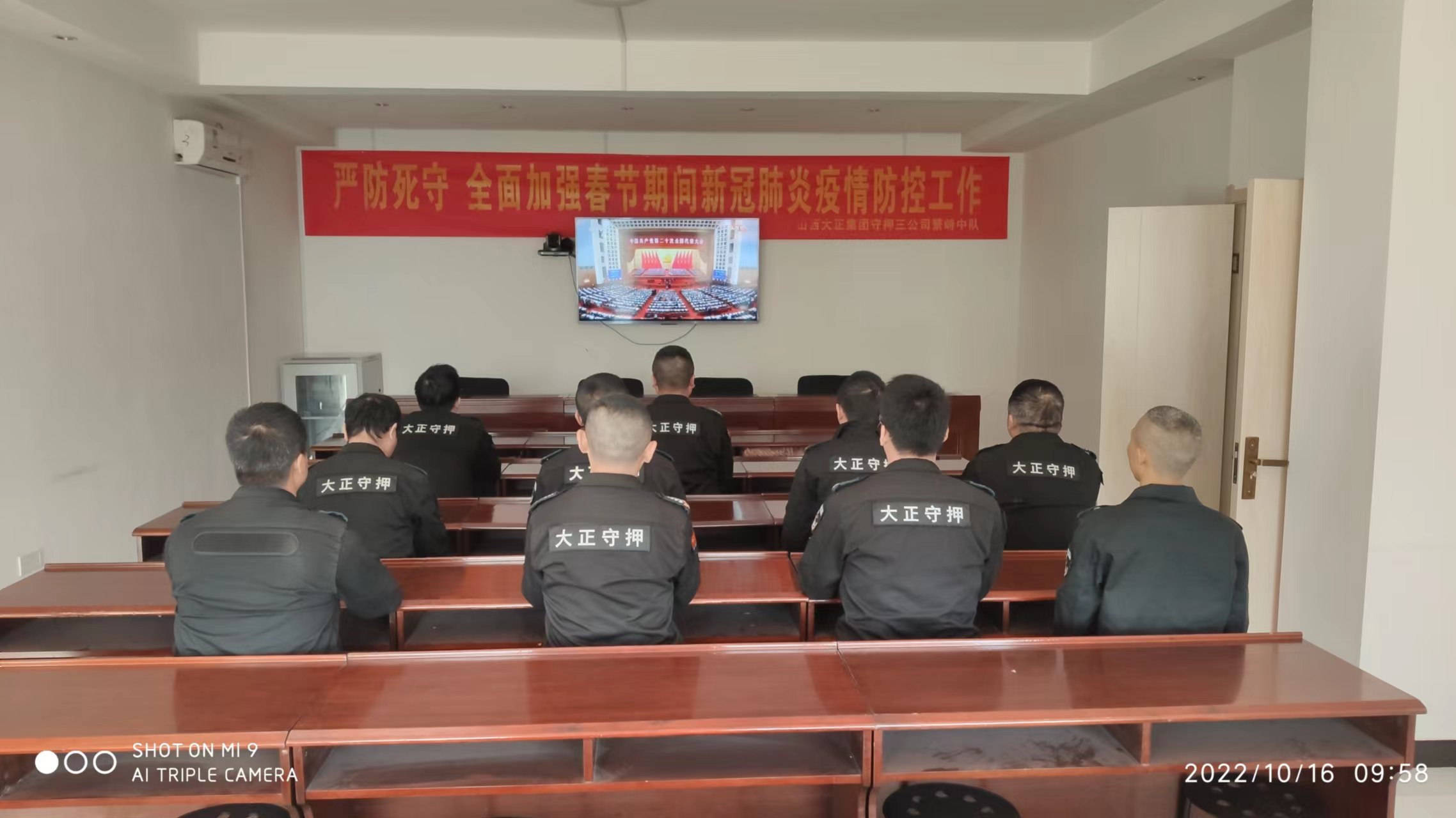 10月16日上午10時(shí),山西大正保安服務(wù)集團(tuán)有限公司組織全體黨員干部職工集中收看了中國(guó)共產(chǎn)黨第二十次全國(guó)代表大會(huì)開幕會(huì)實(shí)況,認(rèn)真聆聽習(xí)近平總書記代表十九屆中央委員會(huì)向大會(huì)作的報(bào)告。
