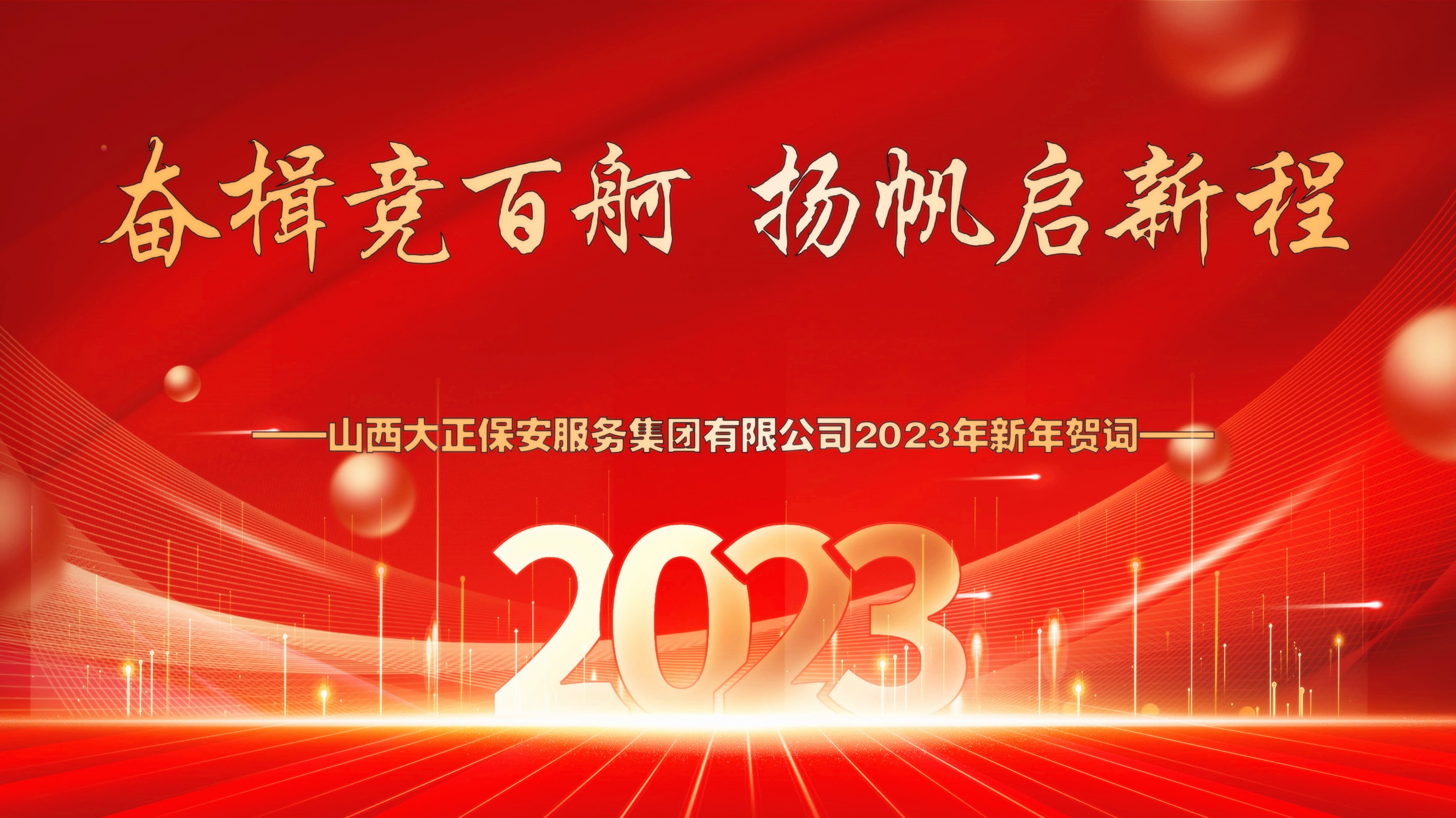 歲序更替,華章又新。2023的新年即將來(lái)臨,在這辭舊迎新、充滿希望的美好時(shí)刻,山西大正保安服務(wù)集團(tuán)有限公司黨委、董事會(huì)及經(jīng)理班子,向集團(tuán)公司全體黨員、干部、職工及背后默默支持大家的家屬朋友們,致以新年的祝福和節(jié)日的問(wèn)候!向始終關(guān)心山西大正保安集團(tuán)發(fā)展建設(shè)領(lǐng)導(dǎo)和同仁;向長(zhǎng)期以來(lái)給予山西大正保安集團(tuán)支持、信任的客戶和合作伙伴致以最衷心的感謝和最誠(chéng)摯的新年祝福!