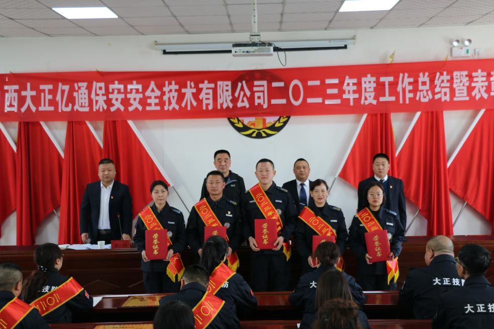 一年春作首,萬事實為要,近日,山西大正億通保安安全技術有限公司召開了2023年度工作總結暨表彰大會。會議在總結成績、表彰先進的同時明確了2024年奮斗目標,動員億通全體員工以集團公司年度工作計劃及發(fā)展規(guī)劃為指引務實擔當、開拓進取,為推動億通公司創(chuàng)新發(fā)展努力工作,為集團公司高質量發(fā)展貢獻力量。集團公司董事、副總經理張瑞東出席會議并講話,億通公司經理張龍作2023年度《團結奮進創(chuàng)佳績 真抓實干譜新篇》工作報告,并就2024年工作進行了安排部署,會議由億通公司副經理袁園主持。