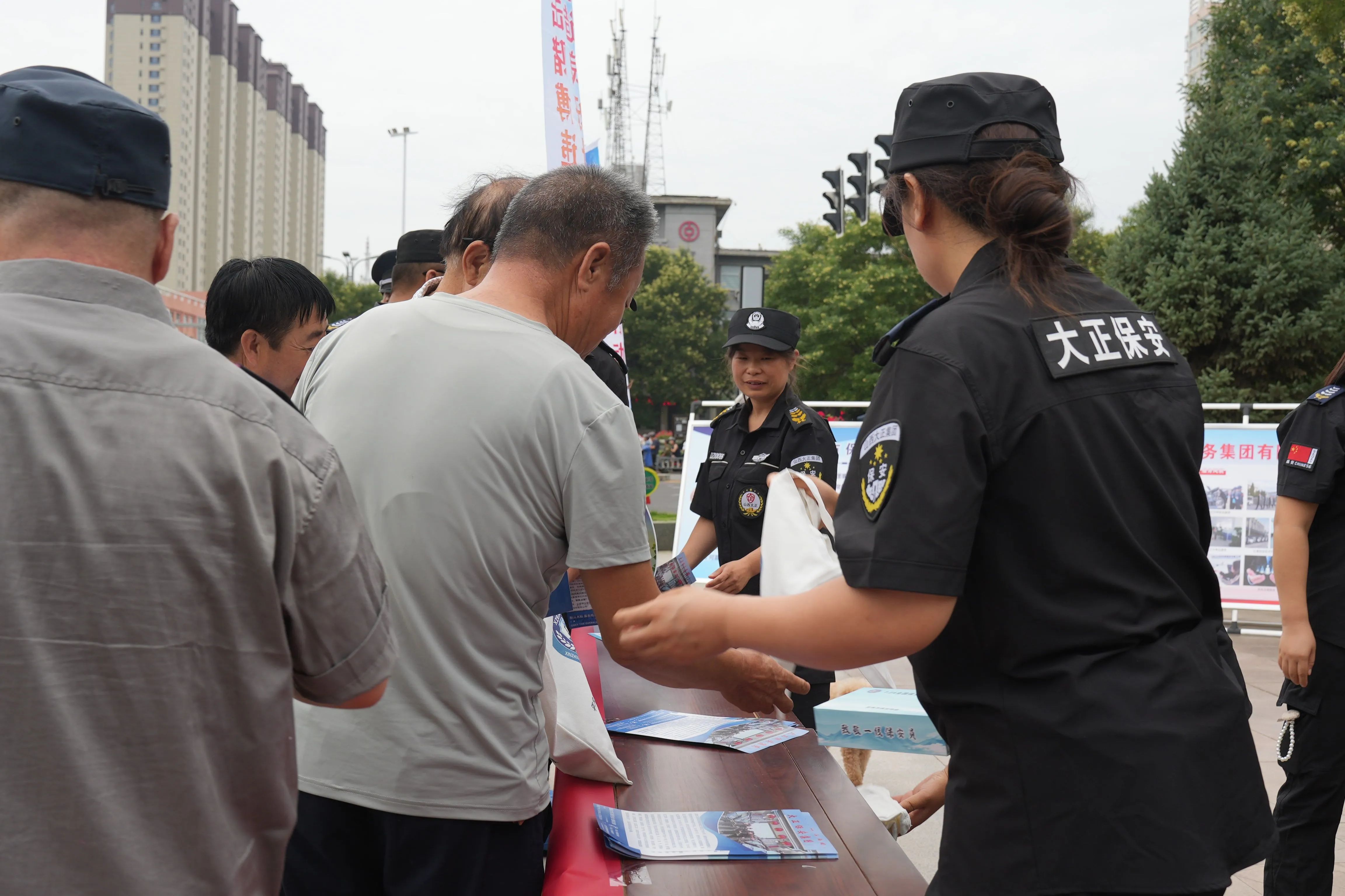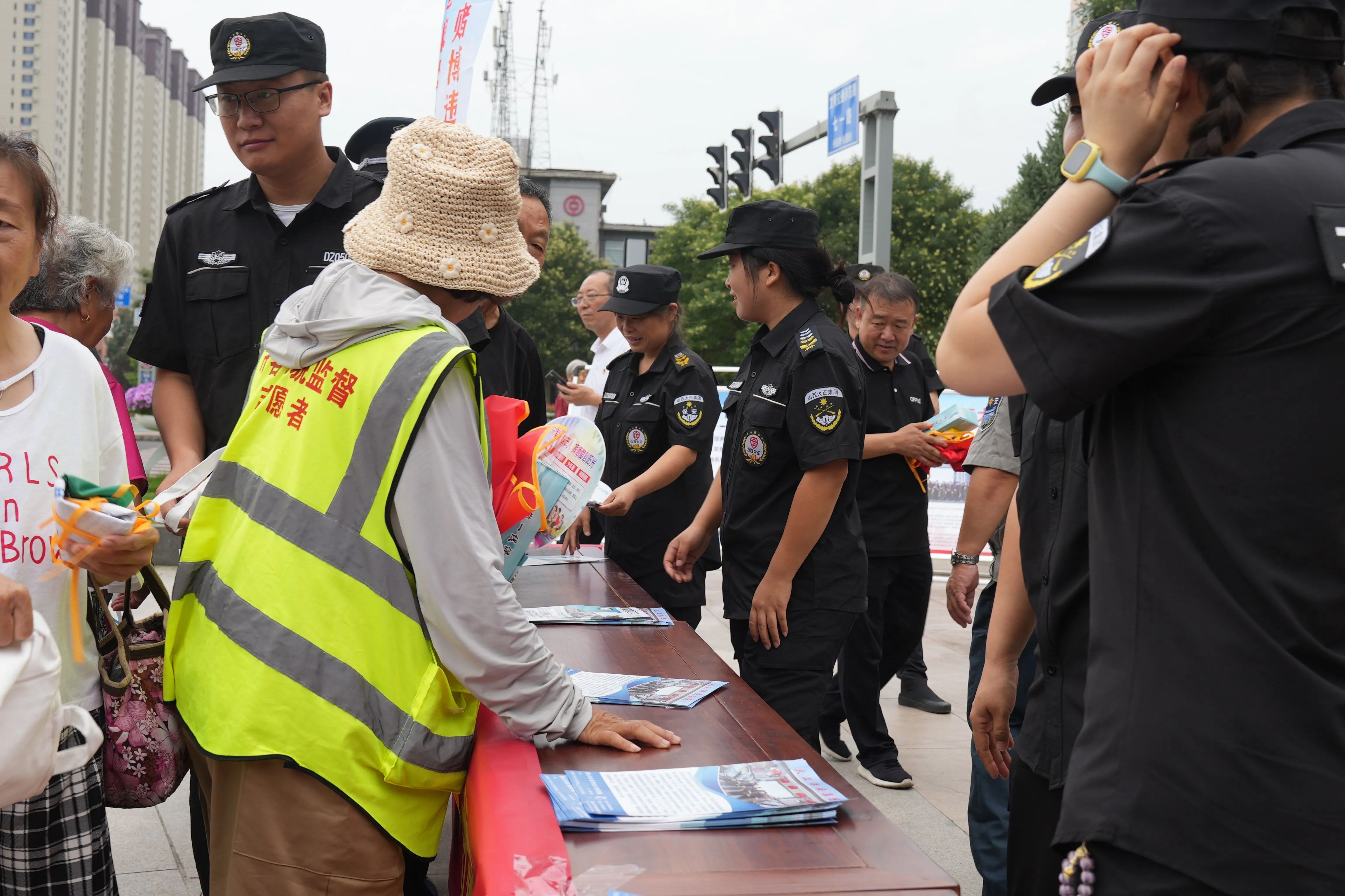 與此同時,山西大正保安服務集團有限公司也積極投身到宣傳活動中來。精心制作了12塊宣傳展板,內(nèi)容涵蓋保安行業(yè)的職責使命、服務范圍、優(yōu)秀事跡等方面,生動展示了保安隊伍的風采和貢獻。保安隊員們更是主動與市民互動,通過現(xiàn)場講解、模擬演示等方式,讓市民更加直觀地了解保安工作的重要性和必要性。