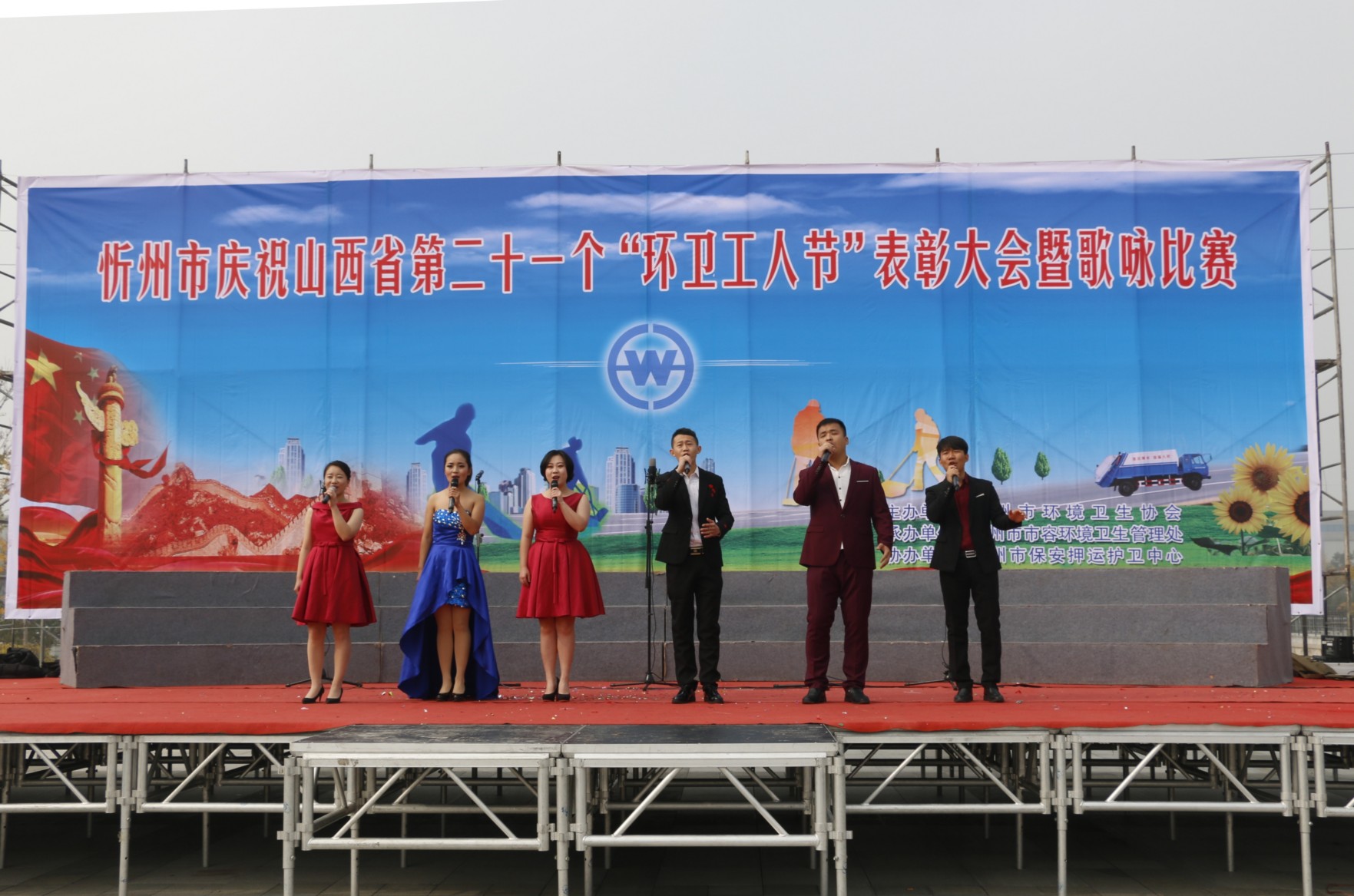 金秋十月,伴隨著十九大的勝利閉幕,環(huán)衛(wèi)工人迎來了自己的節(jié)日“環(huán)衛(wèi)工人節(jié)”。 10月26日上午9時,為了感謝黨和政府對環(huán)衛(wèi)工人的關(guān)心愛護,展示新時期環(huán)衛(wèi)工人在平凡崗位上積極向上、激流勇進的排頭兵風(fēng)貌和不怕苦累的突擊隊精神,忻州市環(huán)衛(wèi)處“慶祝山西省第二十一個‘環(huán)衛(wèi)工人節(jié)’表彰大會暨歌詠比賽” 在大西高鐵忻州站廣場如期舉行,用環(huán)衛(wèi)工人自己的歌聲歌唱我們偉大的祖國。來自全市的千余名環(huán)衛(wèi)工人歡聚一堂,慶祝自己的節(jié)日,市政府副市長武憲堂以及市工會、市住建局、市環(huán)衛(wèi)處等有關(guān)領(lǐng)導(dǎo)出席會議,并與環(huán)衛(wèi)工人一同觀看了歌詠比賽。