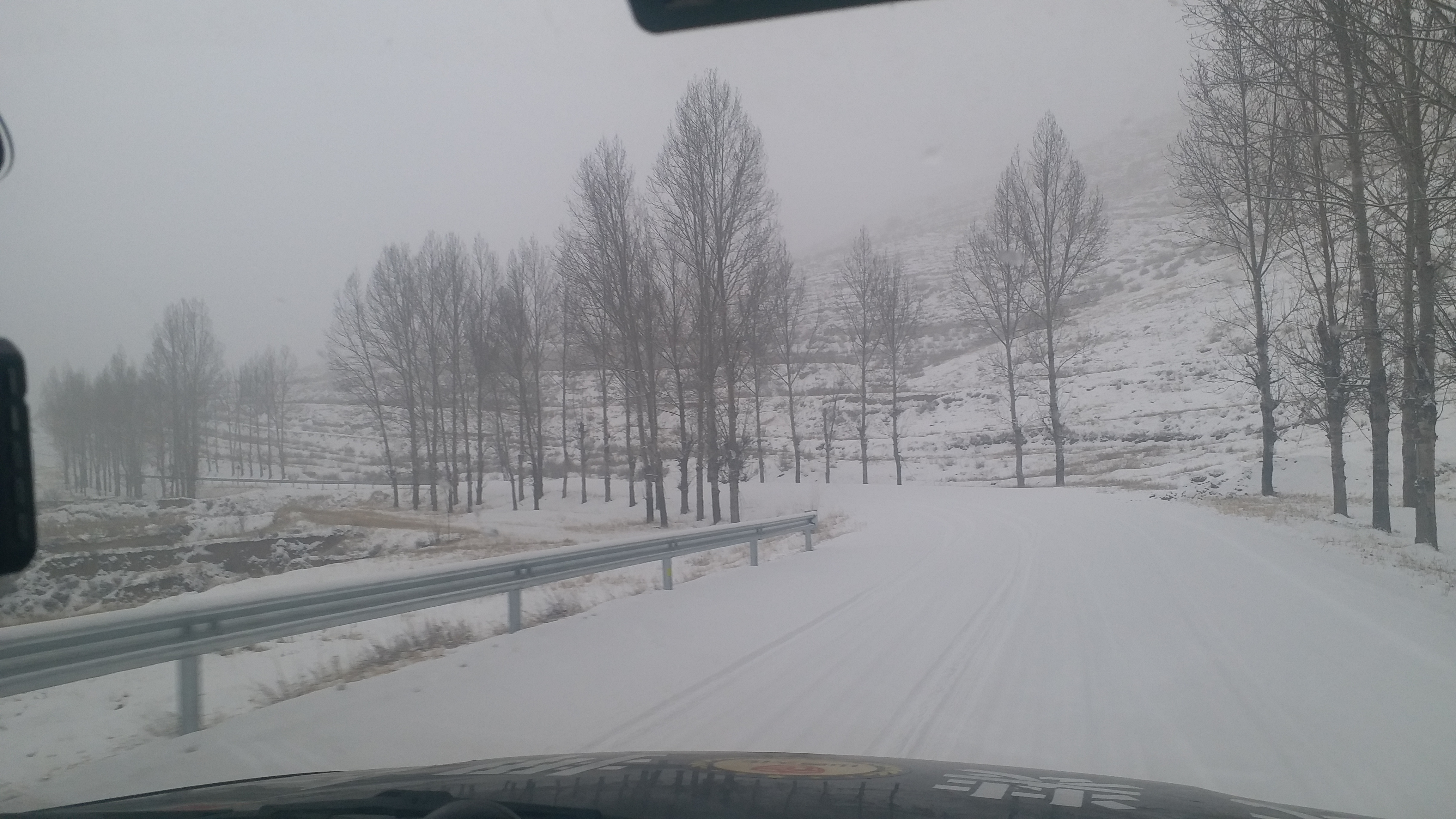 由于是雪天,我們駕駛著運(yùn)鈔車踏上了鄉(xiāng)鎮(zhèn)線路,長路漫漫,道路艱辛,遠(yuǎn)處的高山、田地里白茫茫的一片,好像一夜之間換了新裝,格外的潔白無瑕。