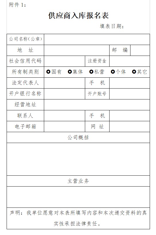 (一)供應(yīng)商入庫報(bào)名表(見附件1);