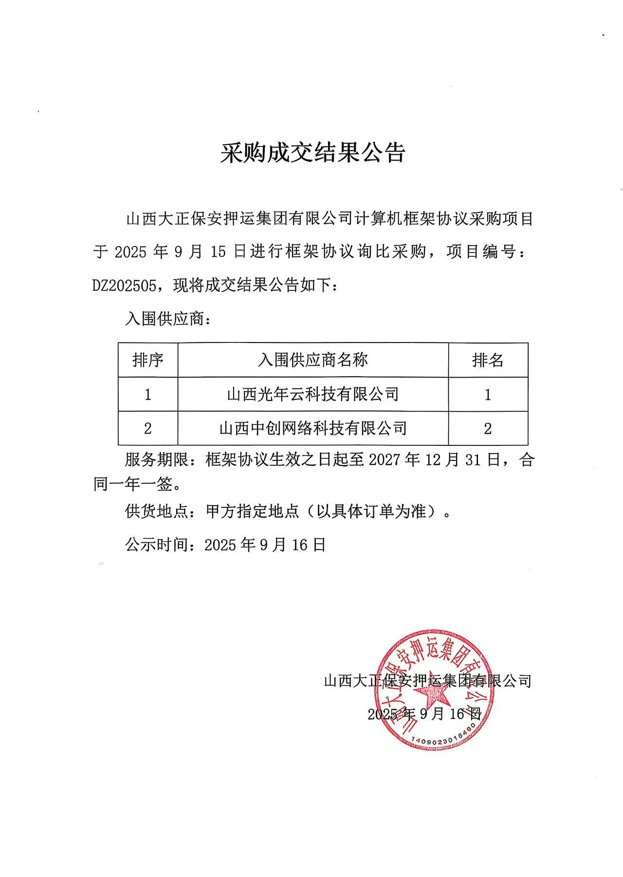 成交結(jié)果公示