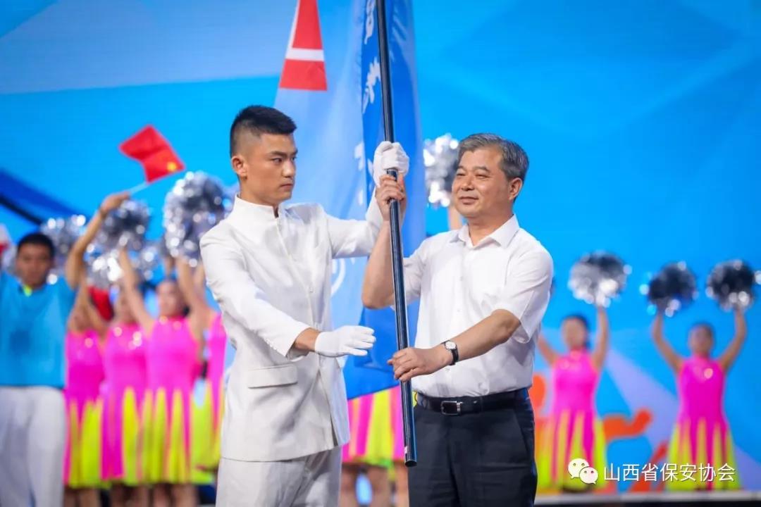 在8月18日閉幕式上,公司保安員白佩沅作為太原市時代新人代表向市委書記羅清宇傳遞省運會會旗,彰顯了新時代國企保安人奮發(fā)向上的精神風貌。