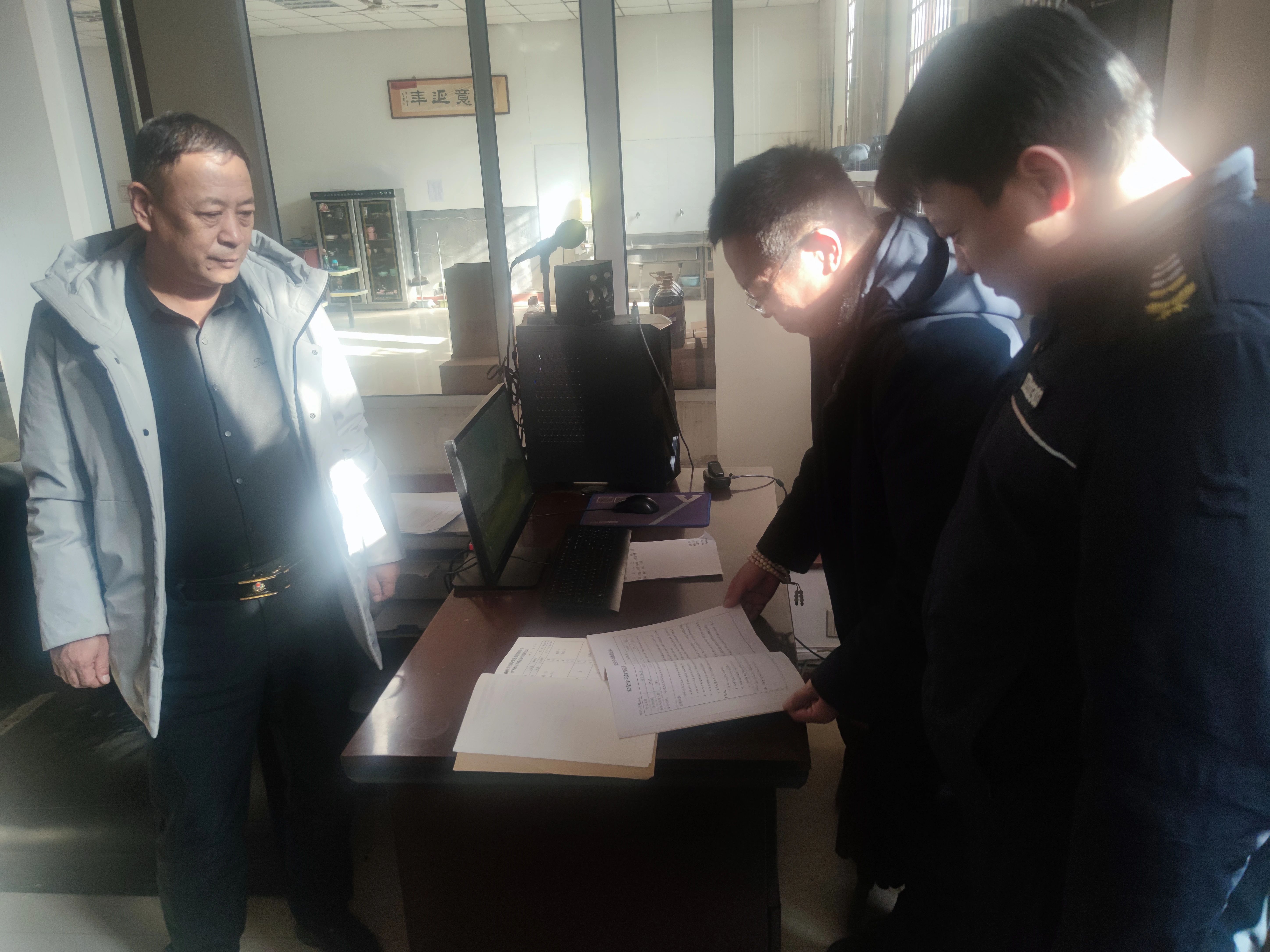 1月15日下午,集團(tuán)公司安全督導(dǎo)檢查組呂雙明、盧文偉、王亮東一行深入守押公司二大隊(duì)定襄中隊(duì)開展全面安全檢查工作,中隊(duì)長(zhǎng)喬昺耀及副中隊(duì)長(zhǎng)梁巖、韓勇全程配合。