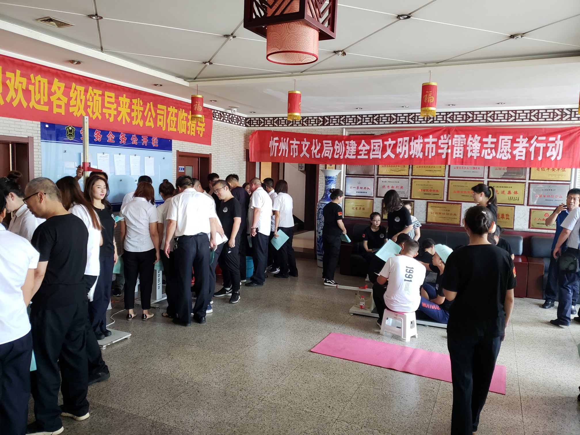 2018年7月20日忻州市文化局創(chuàng)建全國文明城市學(xué)雷鋒志愿者來到公司為公司員工開展了一次全面的體質(zhì)監(jiān)測活動,此次體質(zhì)監(jiān)測是為了響應(yīng)國家提出健康中國2030戰(zhàn)略布局,引導(dǎo)員工科學(xué)進行體育運動合理安排膳食結(jié)構(gòu)的一次無償監(jiān)測服務(wù)。