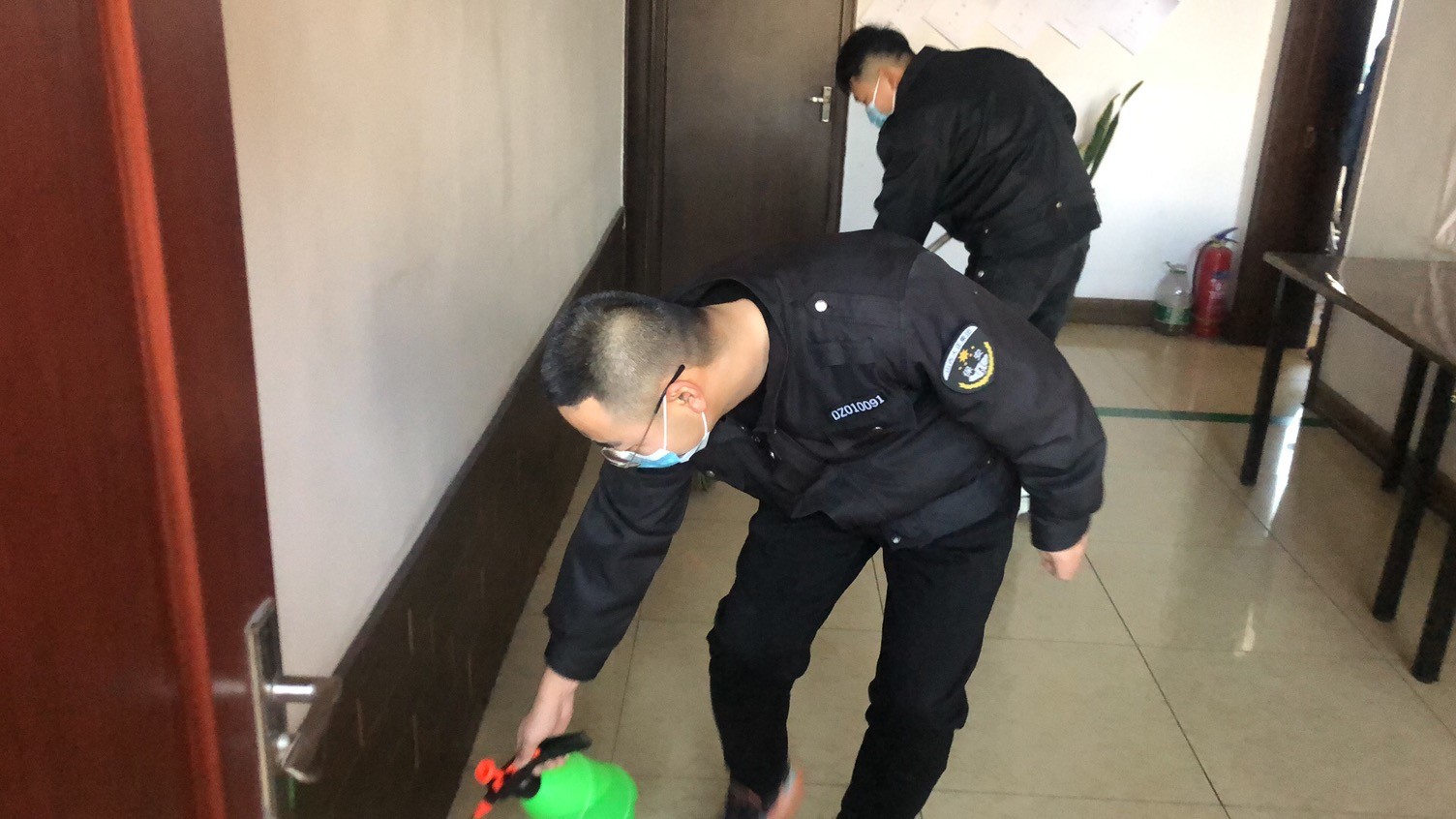 在集體學(xué)習(xí)集團公司文件后,張小平要求:一是加強衛(wèi)生知識宣傳。利用微信群、電子屏、宣傳欄等廣泛宣傳疫情防控衛(wèi)生健康知識,號召全體監(jiān)控人員養(yǎng)成講衛(wèi)生、愛衛(wèi)生、勤洗手等良好的個人衛(wèi)生習(xí)慣,做好自我防護工作。自覺佩戴口罩、手套,勤洗手、勤消毒、勤通風(fēng),不斷提高自身免疫力和抵抗力。二是嚴(yán)抓環(huán)境衛(wèi)生整治。組織在崗人員全面清理站區(qū)內(nèi)所有部位環(huán)境衛(wèi)生。對監(jiān)控室、食堂、衛(wèi)生間等進(jìn)行清潔打掃,做到無死角、無盲區(qū)。加大清掃頻次,減少垃圾滯留時間,鏟除病毒生存空間。尤其對肢體接觸頻繁的門把手、洗手臺、水龍頭等部位做到重點消毒、反復(fù)擦拭,確保不放過任何一個遺漏部位。食堂工作人員每天對食堂、操作間、庫房等衛(wèi)生進(jìn)行徹底打掃和清洗,及時清理廚房垃圾。三是嚴(yán)格做好自身防護。上崗前由組長檢查上崗人員手套、口罩等防護用品的佩戴情況,佩戴不規(guī)范的及時糾正。各科室加強檢查,對在崗期間未嚴(yán)格佩戴防護用品人員嚴(yán)格規(guī)定。四是“堅守安保崗位,及時監(jiān)督警示,真誠服務(wù)到位,助力戰(zhàn)“疫”完勝。”監(jiān)控中心日常工作就比較繁重,監(jiān)控、核查、布防、撤防、登記、提示等,24小時的值守。在人員緊張的情況下,通過語音呼叫對講及時提醒庫內(nèi)人員戴好口罩、禁止吸煙等情況。簡潔的話語,誠摯的提醒,在防控冠狀病毒嚴(yán)峻形勢下,監(jiān)控中心沒有一名員工退縮。